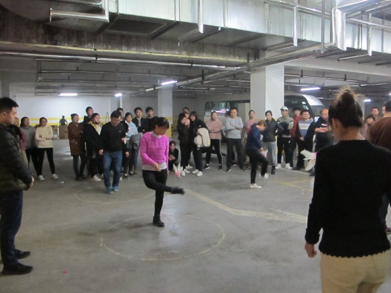 踢毽比賽為限時賽,采取2分鐘計時,每隊5人,同時在各自1.5米的范圍內踢毽, 5人的總體成績為團隊比賽成績。比賽中,毽子在參賽者腳上翻飛起落,單腳踢,左右腳對踢,內踢外翻,花樣不斷,不時贏得現場陣陣喝彩,整場比賽場面緊張激烈。經過比拼,最終322車間代表隊獲得踢毽比賽一等獎。