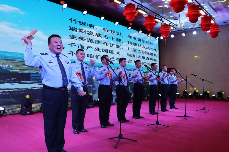 粉針事業部楊偉、保衛處趙金勇等人帶來的《瑞陽旗幟》,通過一個個真實故事的再現,演員們用深情的朗誦,讓大家感受到公司五十三年一路走來的艱辛,感受到瑞陽人展現了瑞陽人永不言棄的精神、奉獻精神、團隊精神、敬業精神以及奮斗精神。瑞陽人砥礪前行,瑞陽旗幟高高飄揚!