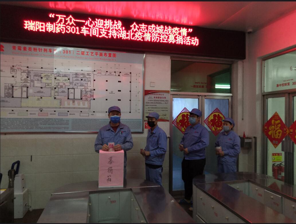 倡議發出后,公司廣大黨員及領導干部積極帶頭參與,全體員工爭相踴躍參加。從2月13日開始,短短一天半的時間就有4459人捐款,共募捐到502610.2元,瑞陽人以實際行動踐行“瑞陽制藥 造福四方”的責任和擔當,為疫區抗疫工作獻上了綿薄之力。這些愛心捐款將通過沂源縣慈善總會全部用于支持湖北抗擊新型冠狀病毒疫情。